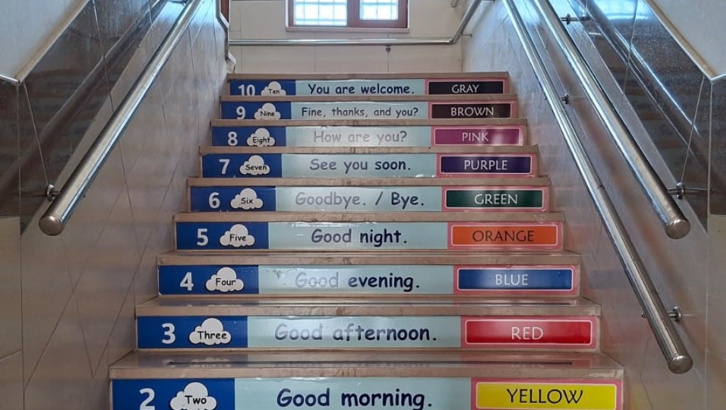 Okulumuzun merdiven basamaklarına İngilizce dersine ait eğitici...